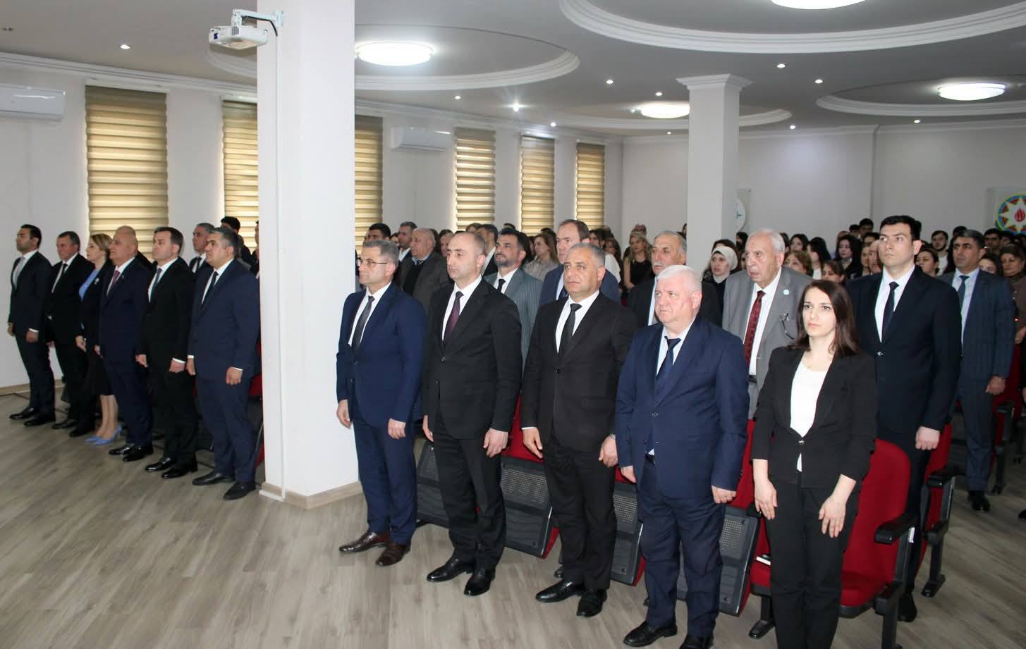 İcxeberinfo.az xəbər verir ki, Azərbaycan Respublikasının Dövlət Himninin səsləndirilməsi ilə başlanan tədbirdə Ümummilli Lider Heydər Əliyevin və soyqırımı qurbanlarının, eləcə də şəhidlərimizin əziz xatirəsi bir dəqiqəlik sükutla yad edilib.