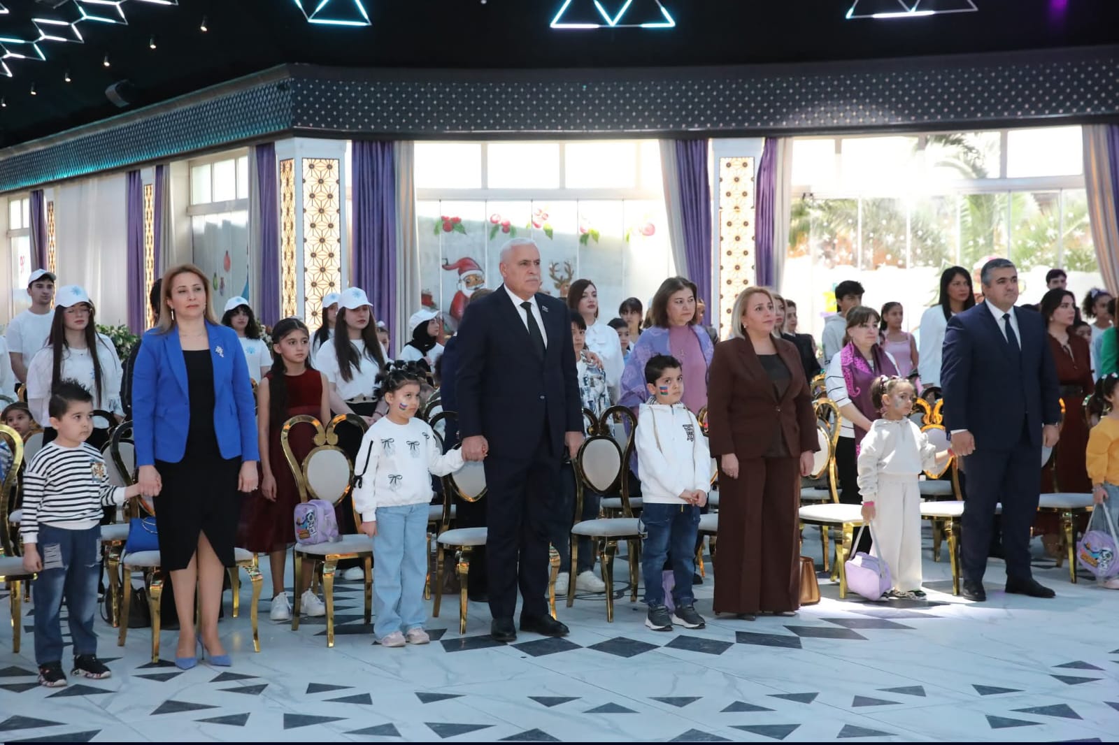 Azərbaycan Respublikasının Dövlət Himninin səsləndirilməsi ilə başlanan şənliyin rəsmi hissəsində Yeni Azərbaycan Partiyası Mərkəzi Aparatının rəhbərinin müavini Ramilə Bədəlova, Milli Məclisin deputatı, “İki sahil” qəzetinin baş redaktoru Vüqar Rəhimzadə, Nizami Rayon İcra Hakimiyyəti başçısının birinci müavini Könül Həsənova, Yeni Azərbaycan Partiyası Nizami rayon təşkilatının sədri Ramil Vəlibəyov, 1 saylı Uşaq evi sosial xidmət müəssisəsinin direktoru Nərminə Zöhrabova, Azərsun Holdinqin İnzibati təsərrüfat departamentinin bölmə rəisi Könül Bəkirova, “Sosial məsələlərin həllinə kömək” ictimai birliyinin sədri Nərmin Daşdəmirbəyli və başqaları çıxış ediblər, uşaqları bayram münasibətilə təbrik ediblər.
