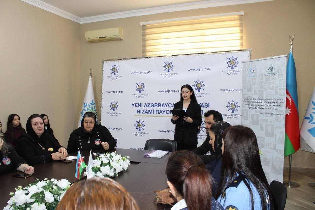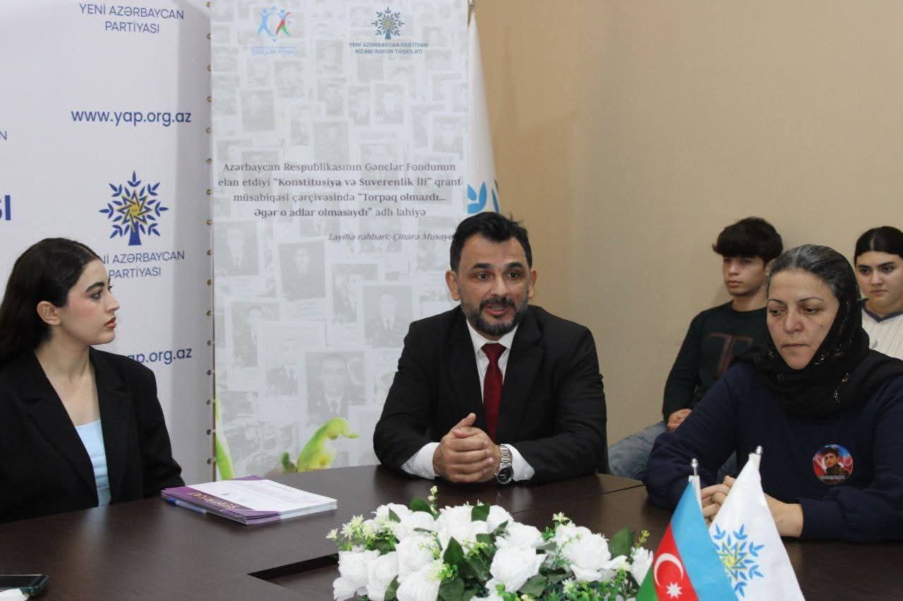 Azərbaycan Respublikası Gənclər Fondunun maliyyə dəstəyi ilə “Konstitusiya və Suverenlik İli” çərçivəsində həyata keçirilən “Torpaq olmazdı, əgər o adlar olmasaydı” layihəsi üzrə YAP Nizami rayon təşkilatında ikinci tədbir təşkil olunub.