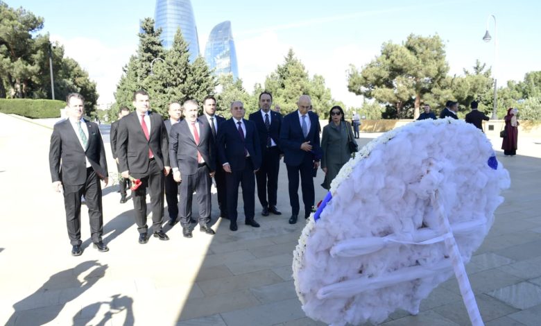 Daha sonra “Türk şəhidliyi” abidəsi ziyarət edilib. Azərbaycanın istiqlaliyyəti uğrunda canlarından keçən, Azərbaycan-Türkiyə qardaşlığının əbədiliyini və sarsılmazlığını əks etdirən bu məzarlıqda uyuyan qəhrəman türk qardaşlarımızın xatirəsi anılıb, abidənin önünə əklil qoyulub, gül dəstələri düzülüb.