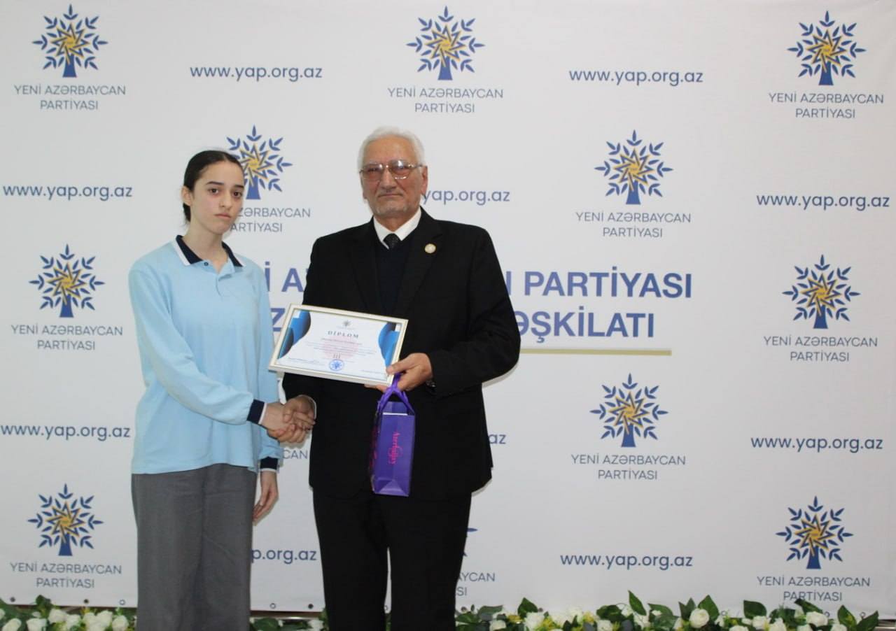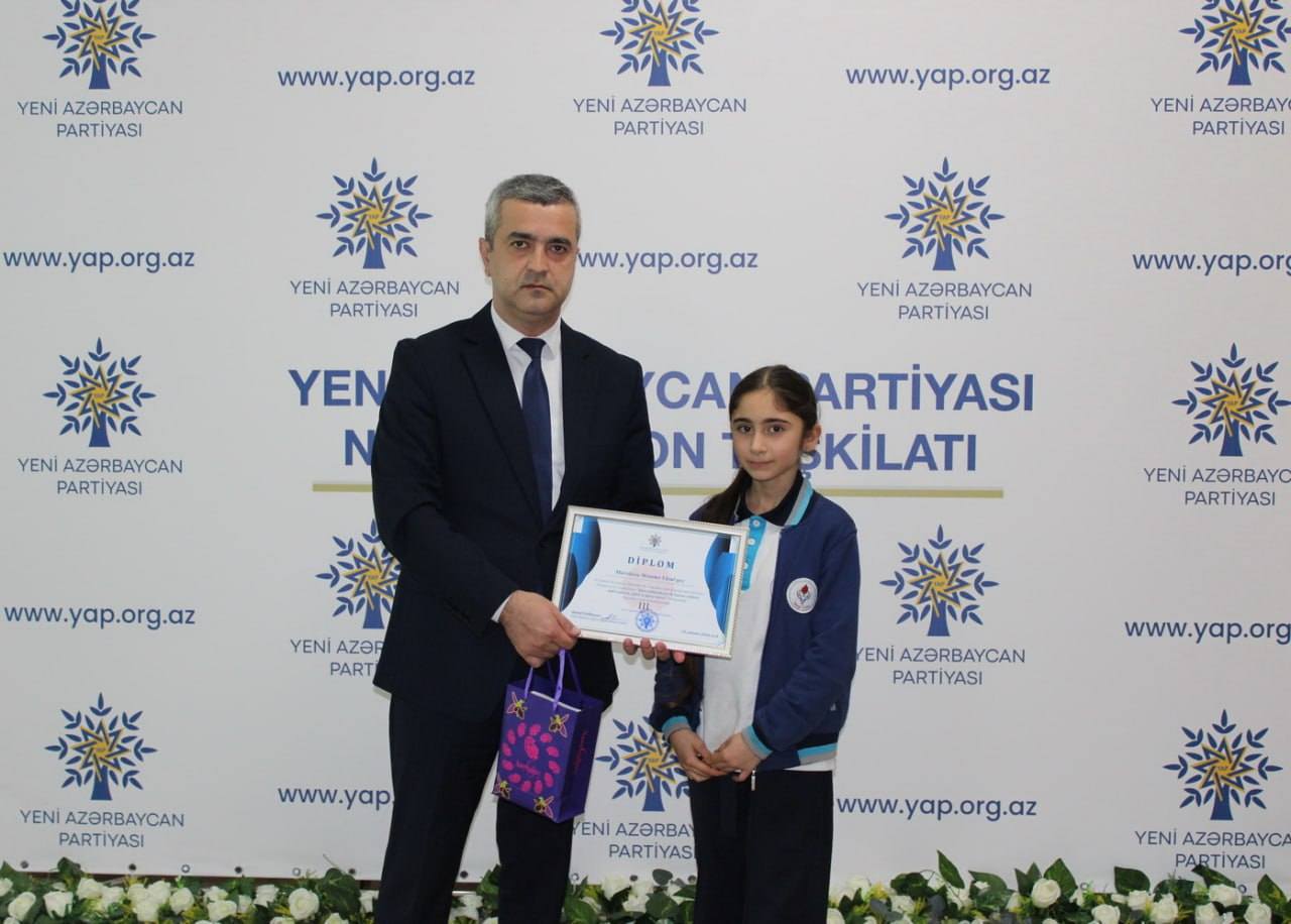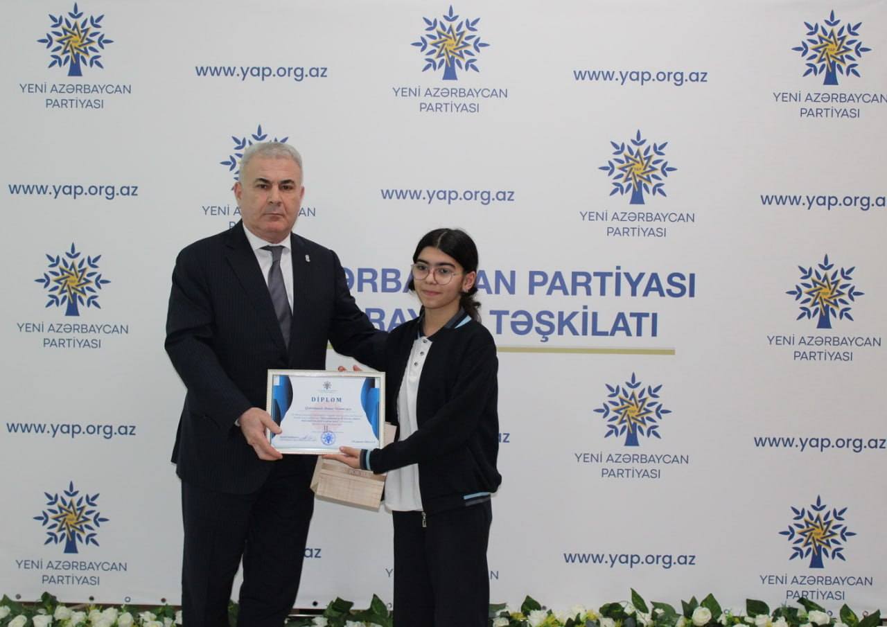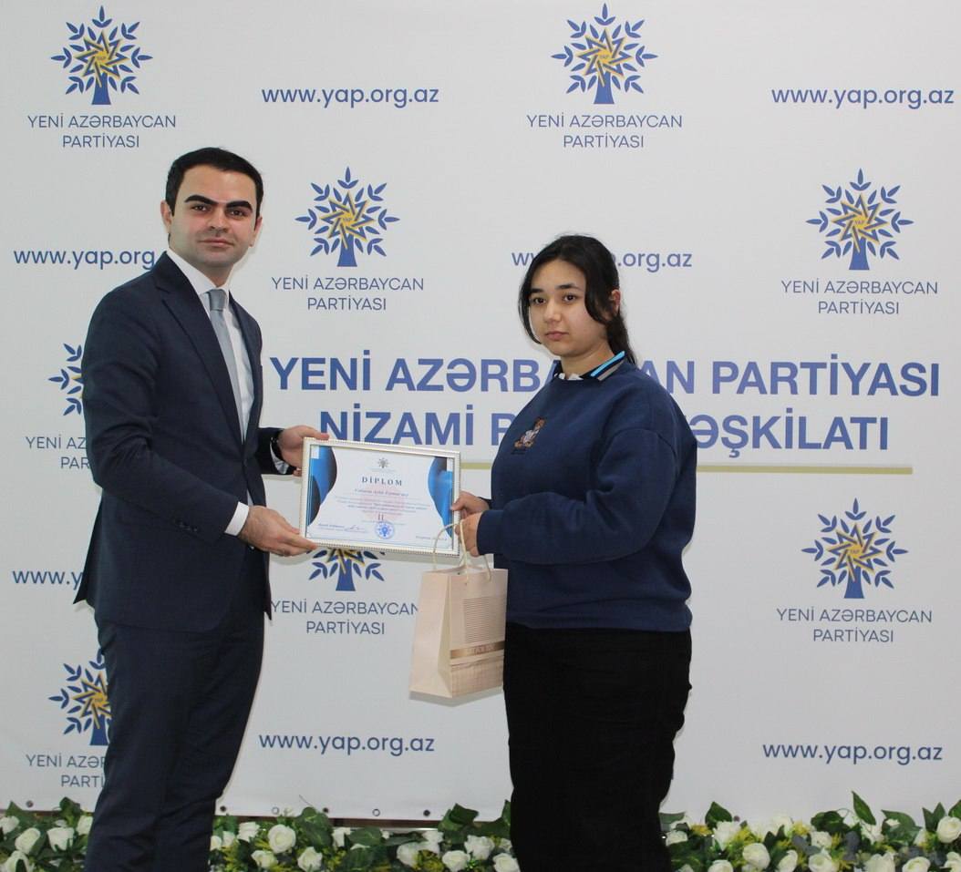 Yeni Azərbaycan Partiyası Nizami rayon təşkilatının qanlı 20 yanvar faciəsinin ildönümü ilə əlaqədar “Qan yaddaşımızın 20 yanvar səhifəsi: milli iradənin zəfəri və qürur tarixi” mövzusunda elan etdiyi rəsm və inşa müsabiqəsinin qalibləri mükafatlandırılıb.