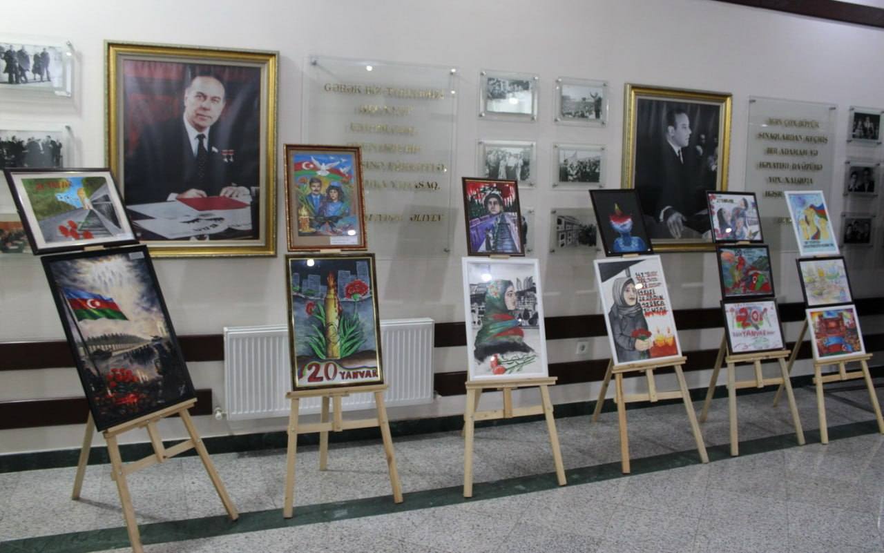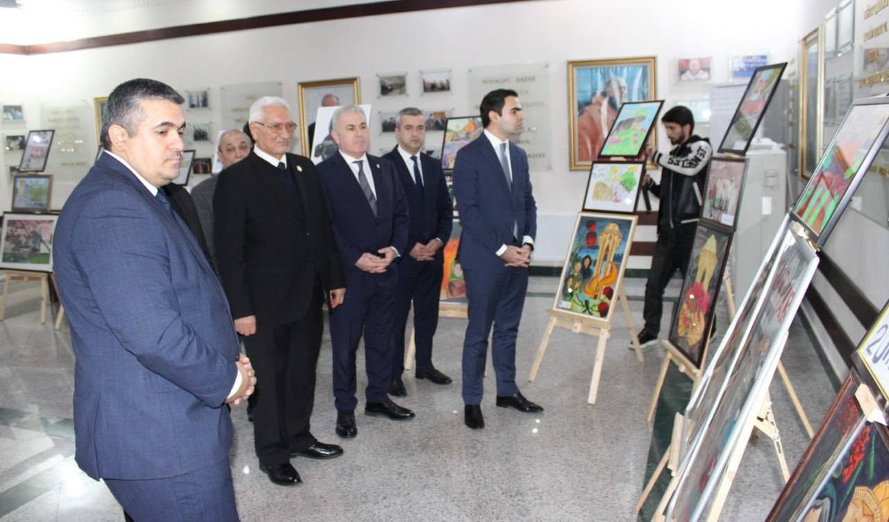 Tədbir iştirakçıları əvvəlcə keçirilmiş rəsm müsabiqəsinin iştirakçılarının əsərlərindən ibarət sərgiyə baxış keçiriblər.