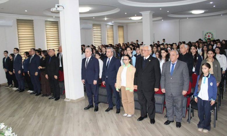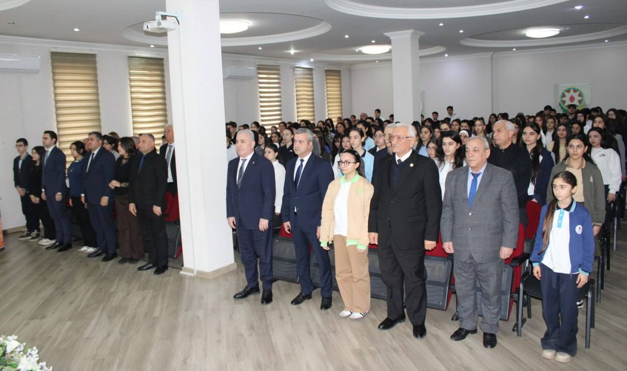 İcxeberinfo.az xəbər verir ki, akt zalında davam etdirilən tədbir Azərbaycanın müstəqilliyi və ərazi bütövlüyü uğrunda canını qurban vermiş şəhidlərin əziz xatirəsinin bir dəqiqəlik sükutla yad olunması və Azərbaycan Respublikasının Dövlət Himninin səsləndirilməsi ilə başlayıb.