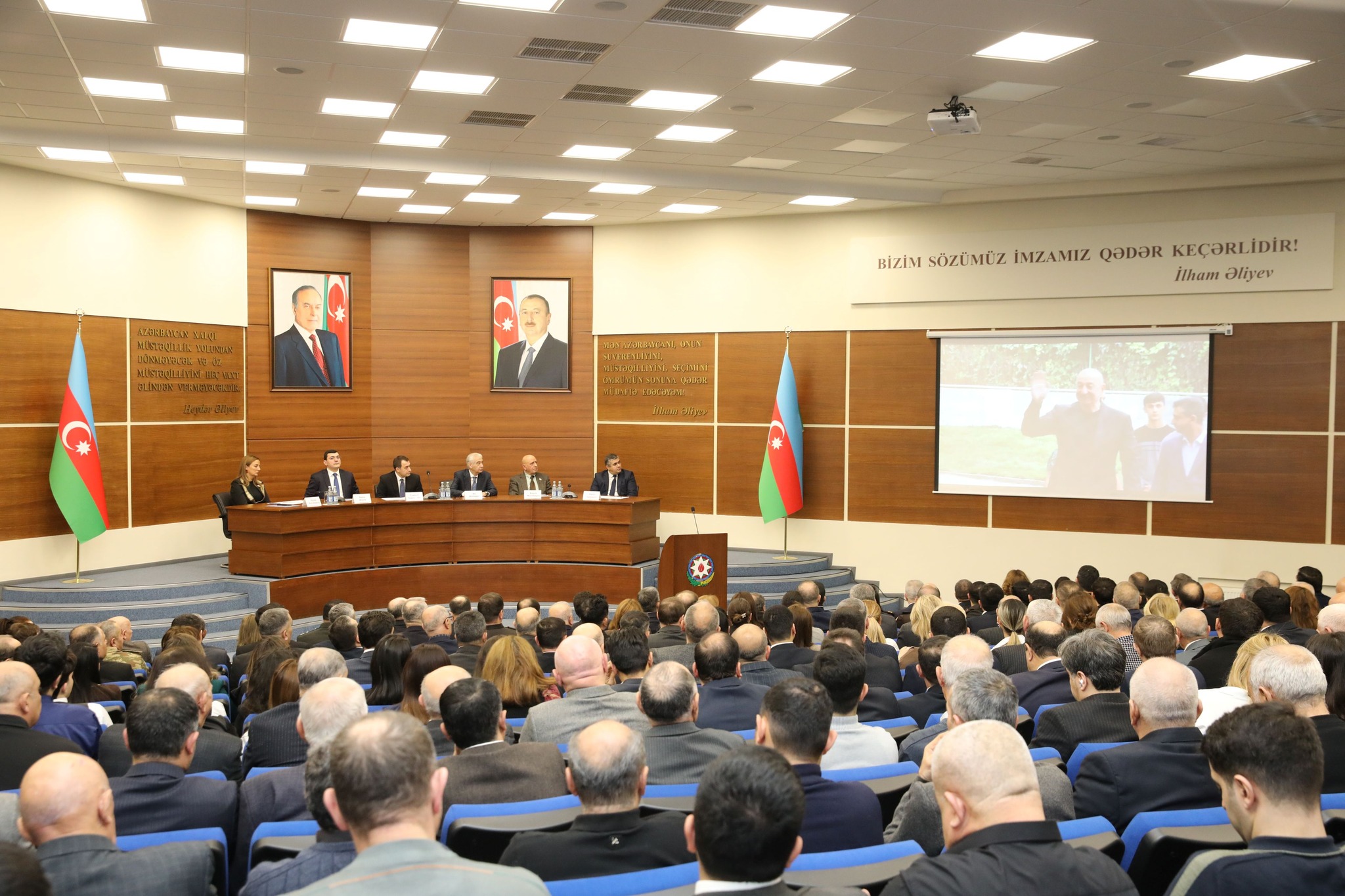 Sonra 2025-ci il ərzində Nizami rayonunda görülmüş işlər və keçirilmiş tədbirlərə dair videofilm nümayiş olunub.